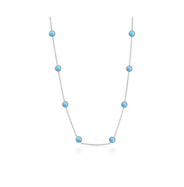 Caribbean Treasures Sterling Silver, Round Station Larimar Necklace