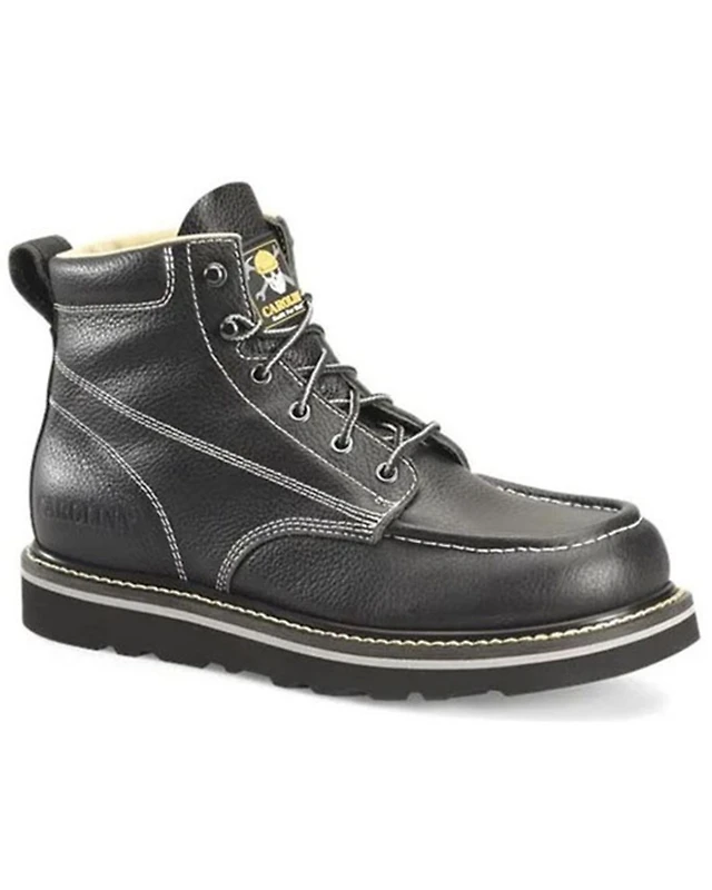 Carolina Men's Black 6" Flatiron Wedge Lace-Up Full-Grain Work Boot - Moc Toe