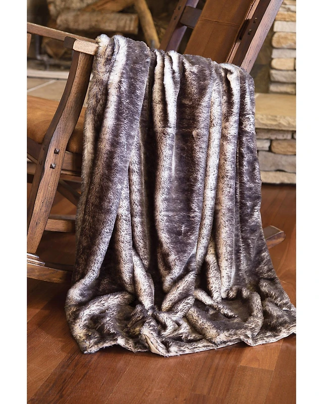 Carstens Home Dark Grey Tipped Fox Faux Fur Throw Blanket