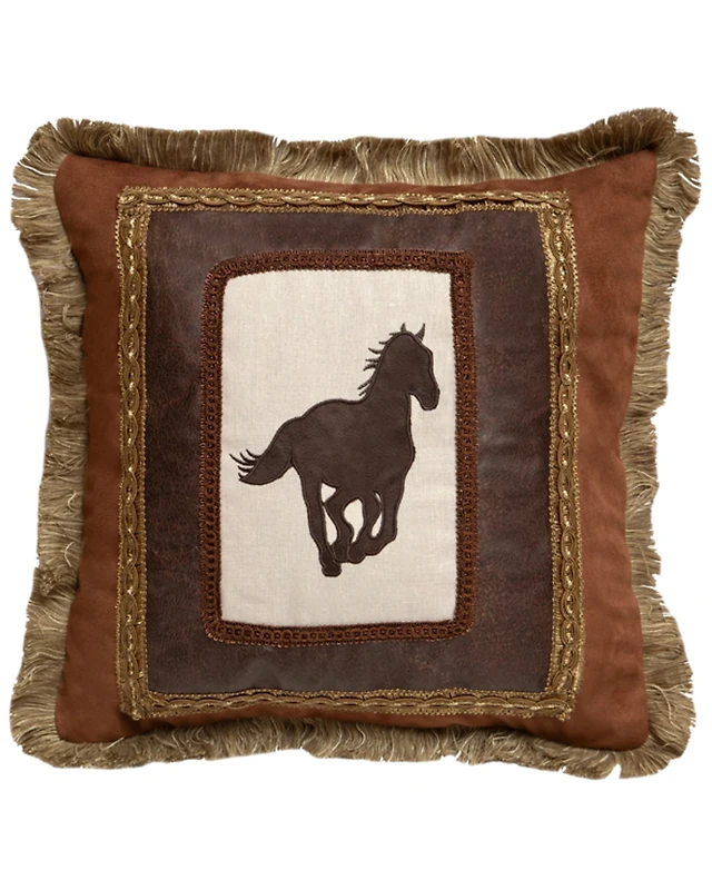 Carstens Home Hold Your Horses Embroidered Fringe Decorative Throw Pillow