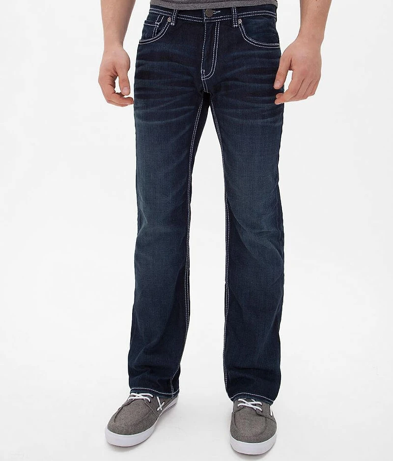 Regular fit bootcut jean Low rise, 19" bottom opening Embroidered back pockets Hand sanding, whiskering and grinding details Zip fly Contrast overlock stitch on interior flat busted seam