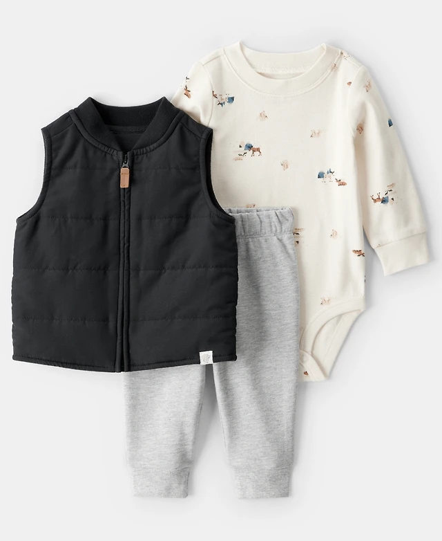 Carter's Baby Boys 3-Piece Quilted Jacket, Bodysuit and Pants Set