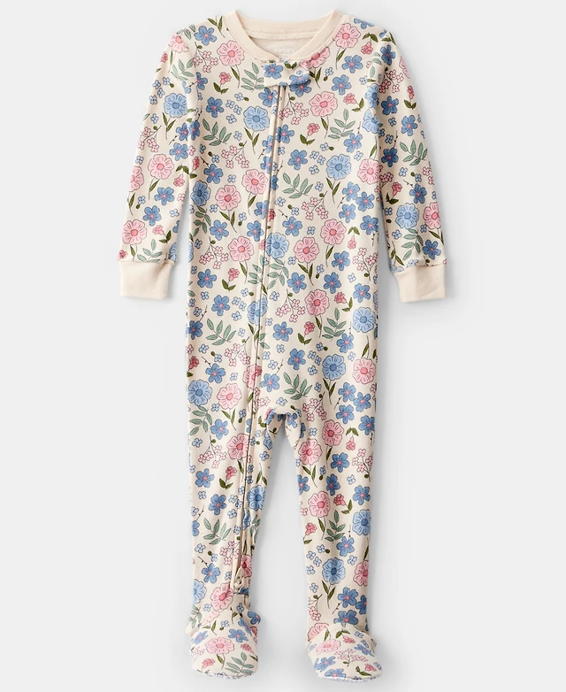 Carter's Baby Girls Floral Print Footed Long-Sleeve Bodysuit