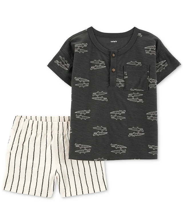 Carter's Toddler Boys Alligator Henley T-Shirt & Striped Pull-On Shorts, 2 Piece Set