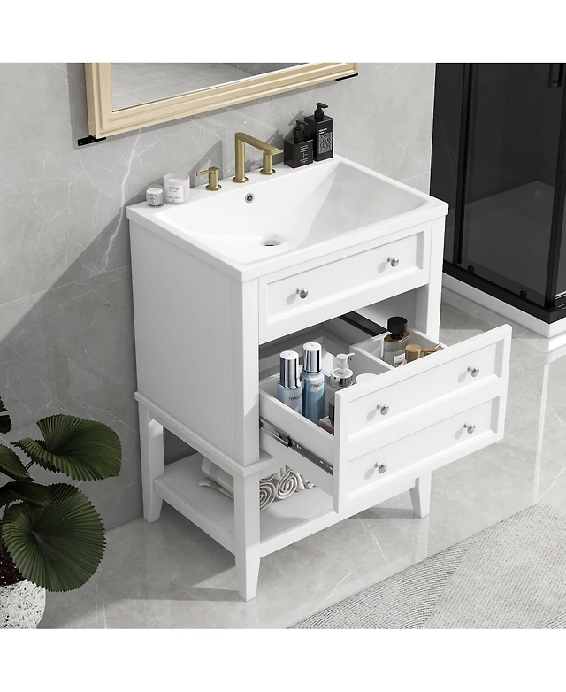 Sillysis 24.4" Retro Freestanding Bathroom Vanity with Sink, Storage Cabinet Open Shelf & Ample Drawers