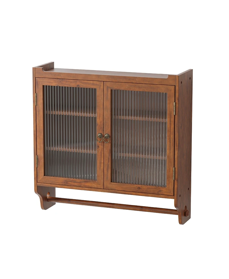 Casainc 24.8" Vintage Double Door Wall Cabinet With Glass Doors, 3 Tiers and Towel Rack