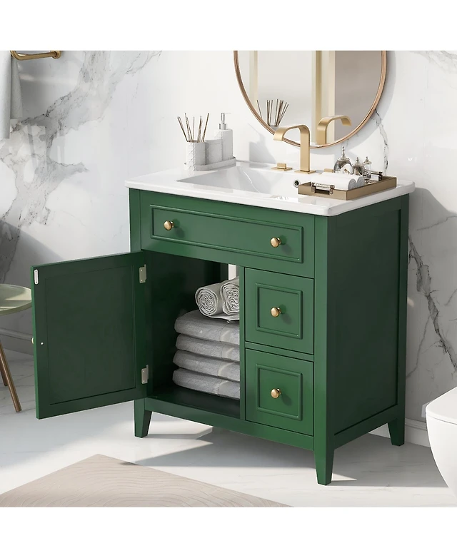 Sillysis 30'' Bathroom Vanity with Ceramic Sink, Solid Wood Frame, Multi-Drawer Storage & Soft Close Door for Modern Bathrooms