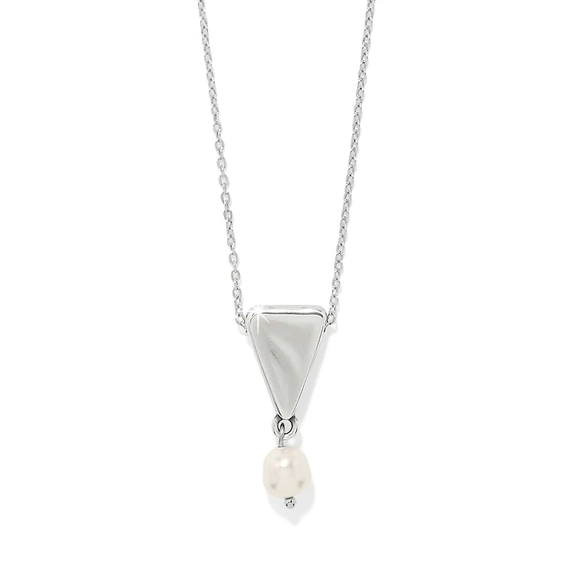 Another fresh shape for the Cascade Collection inspired by a small waterfall and automotive designs, this triangular shaped necklace with its fluid sculpting and drop pearl really gives a unique touch to any look.