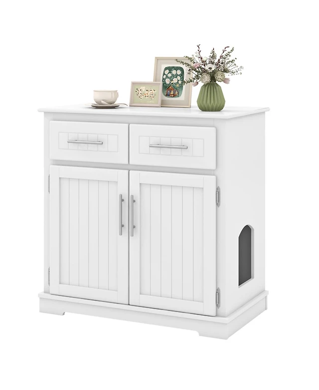 Cat Litter Box Enclosure with 2 Drawers and Double Doors