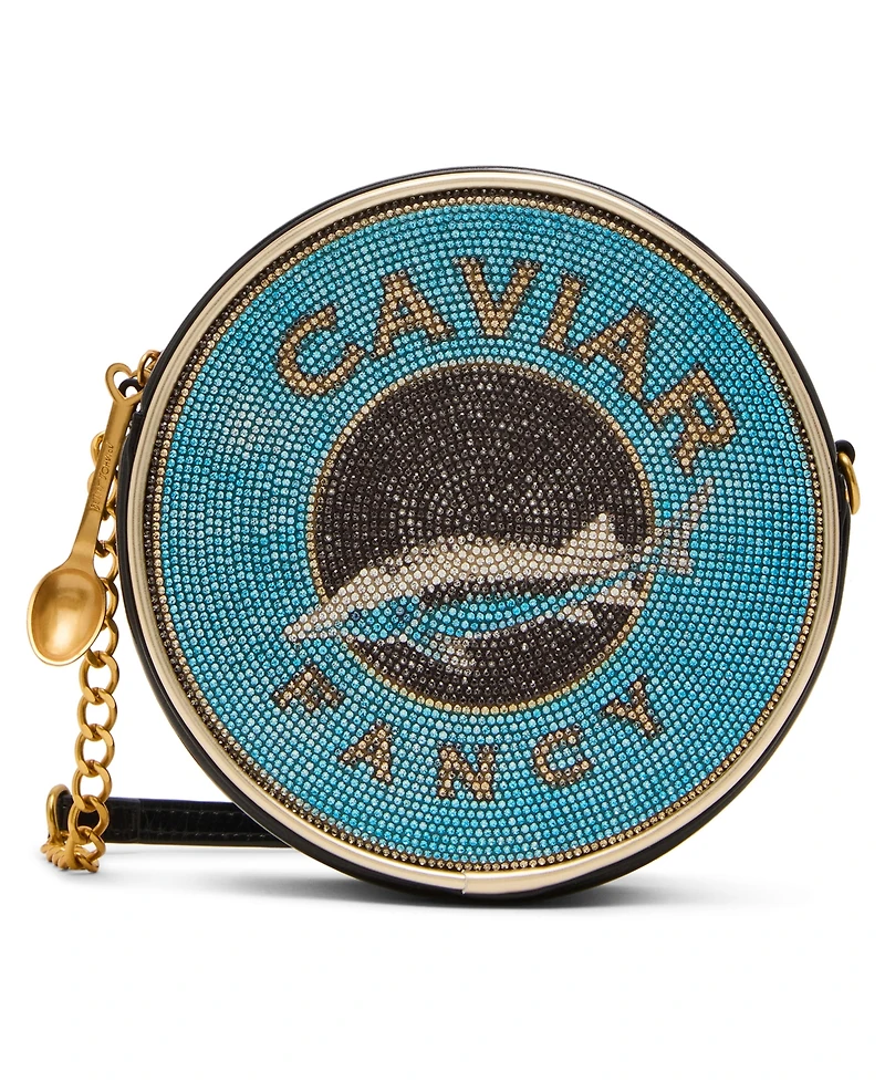 Sparkle on the go with this dazzling crystal caviar crossbody in a gorgeous blue hue. Featuring a whimsical spoon-shaped zipper puller that adds a touch of quirky charm, this bag is perfect for anyone who loves to make a statement. Carry your essentials in style with a bag that's as fun and fabulous as you are.