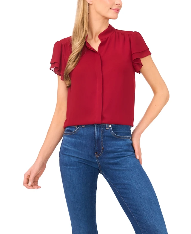 CeCe Women's Collared Neck Double Flutter-Sleeve Top