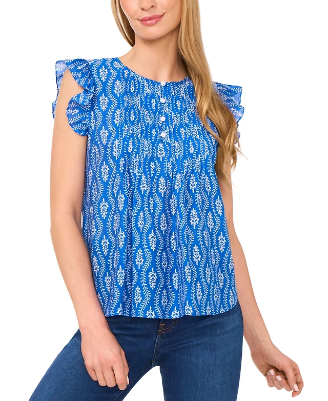 CeCe Women's Floral Button-Front Ruffle-Sleeve Blouse