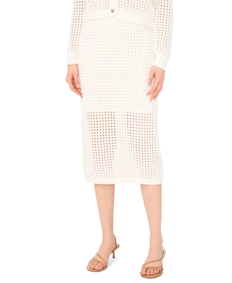 Sleek and contemporary, this CeCe midi skirt is highlighted by open-knit construction that adds a breezy, textured dimension to the pencil silhouette. A lined interior keeps the look polished and comfortable, while pull-on styling makes getting dressed effortless. About The Brand: CeCe is a contemporary lifestyle brand inspired by a romantic take on the everyday, punctuated by taste, wit, and on-the-go flair.