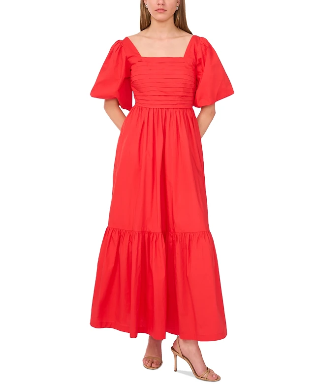 CeCe Women's Square-Neck Puff-Sleeve Tie-Back Maxi Dress