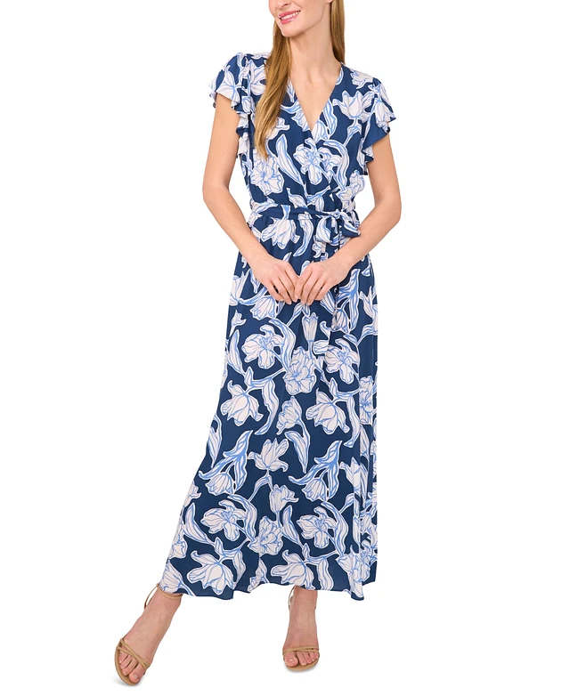 CeCe Women's Wrap-Front Short-Sleeve Maxi Dress