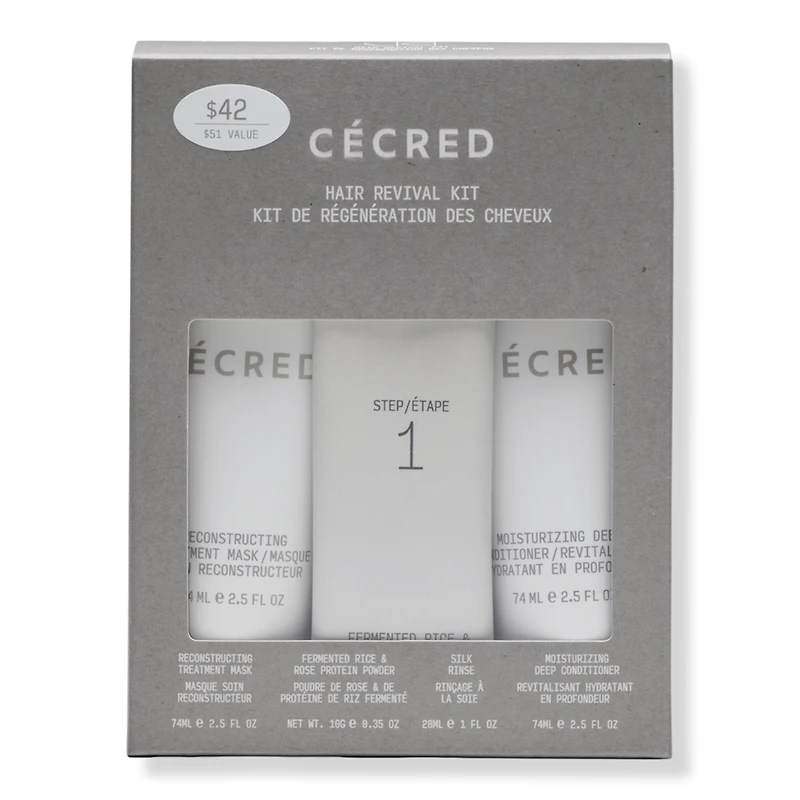 HAIR REVIVAL KIT. Benefits: Reconstructing Treatment Mask:. Clinically tested to reduce damage, increase visible strength, and improve shine. Allure 2024 Best of Beauty Winner - Best Mask. Fermented Rice & Rose Protein Ritual:. Inspired by fermented rice water rituals in Asian cultures, renowned for hair-strengthening and length-retention benefits. Innovative 2-step formula for strength and softness makes hair more resistant to breakage and delivers powerful defense against shedding caused by hair breakage. Moisturizing Deep Conditioner. Ultra-rich, buttery-cream formula deeply nourishes and delivers intense hydration. Revives dehydrated and dull hair. The items in this kit are:. Color safe. For all hair types and textures. Safe for human hair wigs and weaves. Includes: Reconstructing Treatment Mask (2.5 oz). Fermented Rice & Rose Protein Ritual (1 treatment). Moisturizing Deep Conditioner (2.5 oz). Research Results: Reconstructing Treatment Mask is clinically tested to reduce damage and improve strength and shine after one use*. Bioactive Keratin Ferment technology repairs damage and reduces breakage by 2x**. Fermented Rice & Rose Protein Ritual makes hair 3x more resistant to breakage, improving length retention**. Fermented Rice & Rose Protein Ritual reveals smooth, silky hair that is 2x shinier**. *Based on a 3rd party clinical study of 35 participants after 1 use. **Tested in a 3rd party clinical laboratory using hair tresses.
