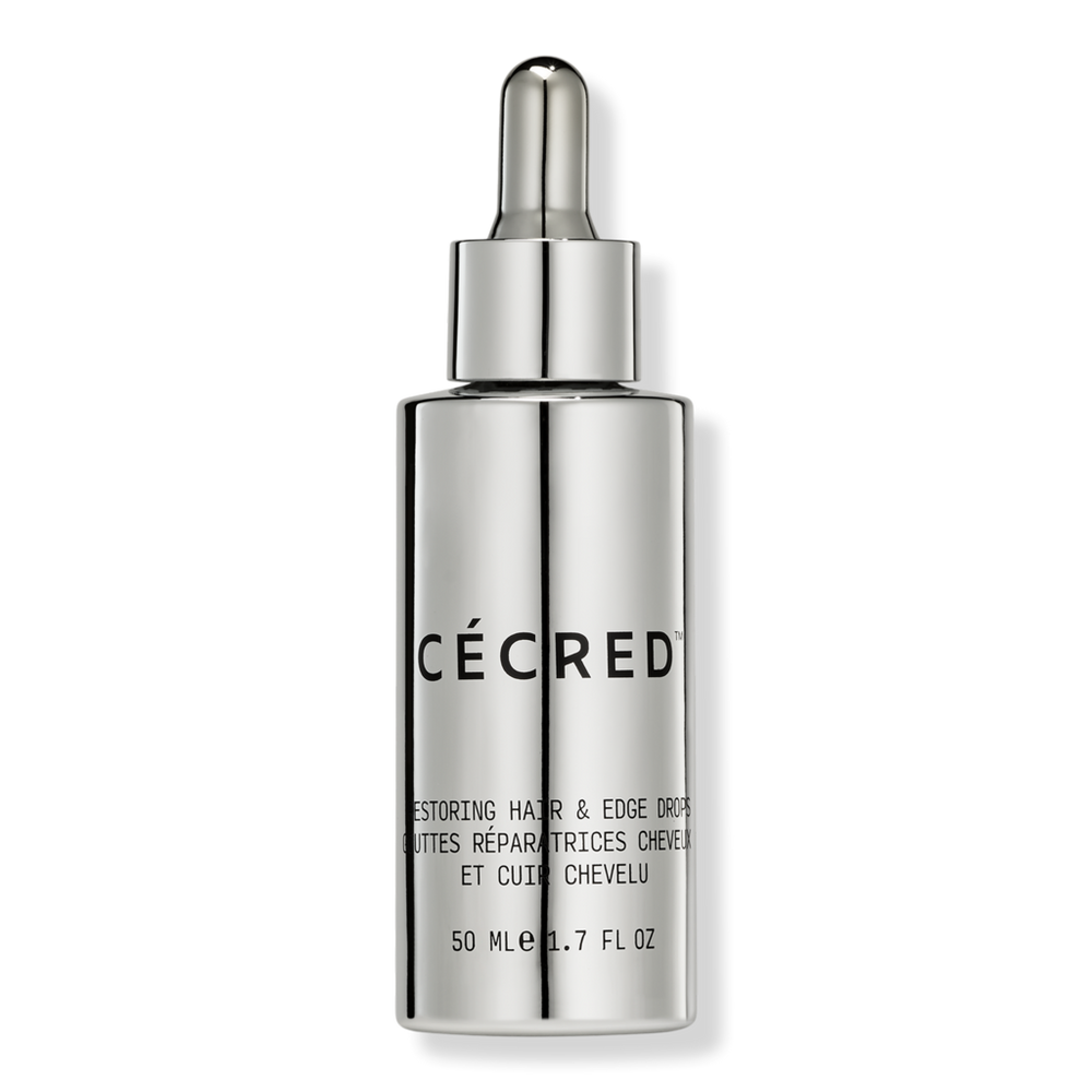 RESTORING HAIR & EDGE DROPS 1.7FLOZ. Benefits: Enhances scalp health and follicle vitality. Leaves hair, hairline, and edges looking fuller and healthier. Visibly strengthens hair from root to tip. Increases the appearance of hair density. Fast-absorbing and non-greasy formula. Optimal results when used daily. Dermatologist-tested. For those experiencing thinner-looking hair for any reason - including hormone changes, stress, styling, chemical processing, and high-tension styles. For those looking to support a fuller-looking hairline. For those looking to maintain their hair health. For all hair types and textures. Can be used while wearing extensions, wigs, and weaves to support hair density. Key Ingredients: Biopeptide-5 - A proprietary blend of 5 key peptides known to visibly improve hair density. Bioactive Keratin Ferment - Ccred's patent-pending technology: this fermented blend from lactobacillus, a hydrolyzed wool keratin, and honey balances, reduces breakage, delivers a protein infusion, and repairs with healing humectants. Fermented Rice Powder - Fermented rice proteins with amino acids and inositol rejuvenate hair. Biotin - Helps support keratin, hair's essential protein. Rose Extract - Sacred beauty tonic that restores hair vitality. Ginger Extract - An ancient antioxidant-rich hair and scalp health hero. Signature Fragrance - Rich and complex, Temple Oud has notes of oud, Australian sandalwood, warm musk, night-blooming jasmine, Haitian vetiver, and violet leaves. Formulated without silicones, SLS/SLES, phthalates, and parabens. Research Results: 1.5x visibly denser hair*. 84% agree they saw edges & hairline come back*. 84% visibly improved hair density*. 84% improved scalp & hair health*. *3rd party consumer study over the course of 16 weeks.