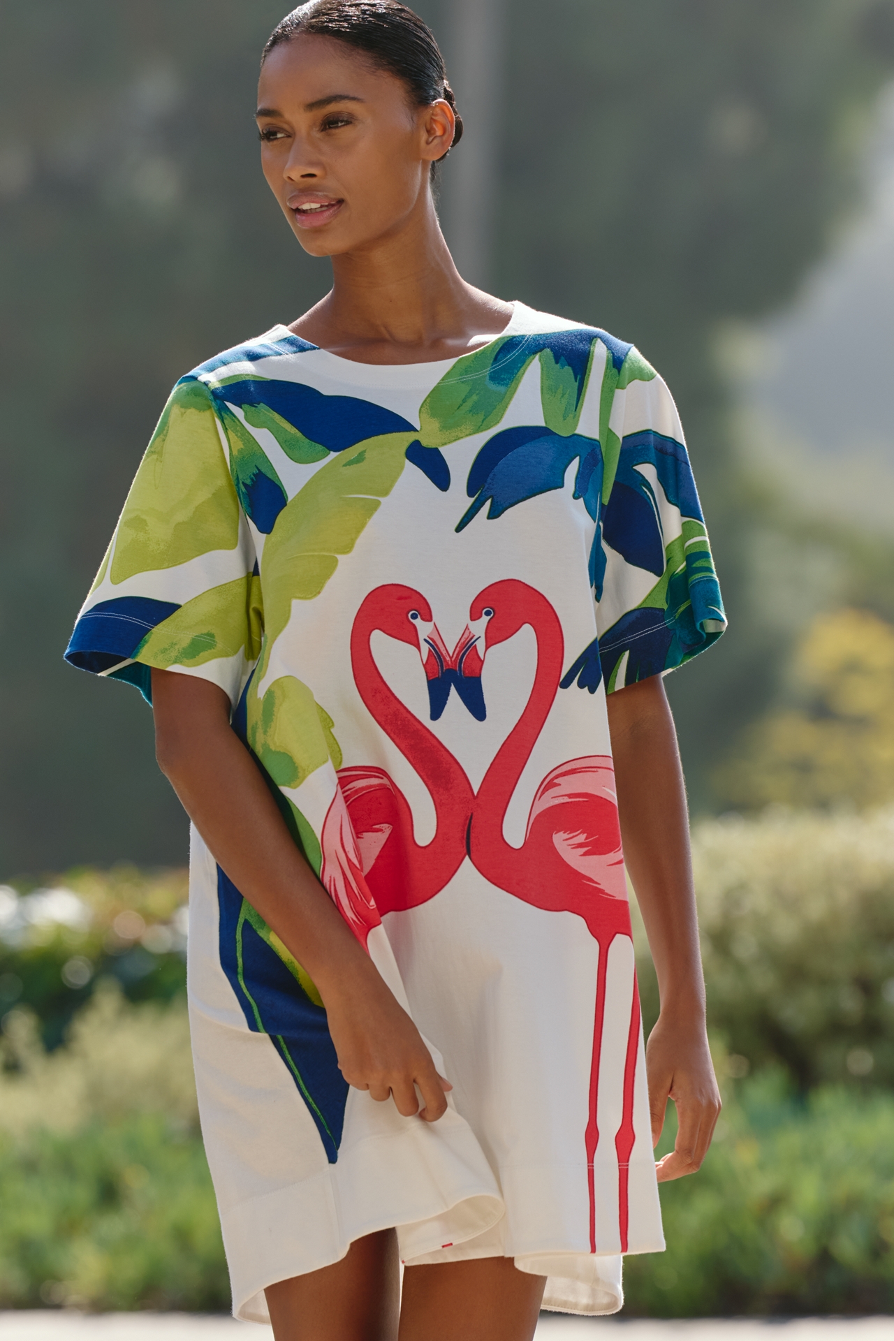 Celandine Short-Sleeve Cotton Swing Dress