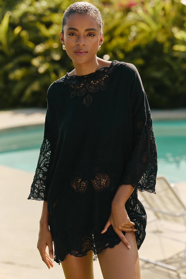 Celandine Linen-Blend Lace Mini T-Shirt Dress