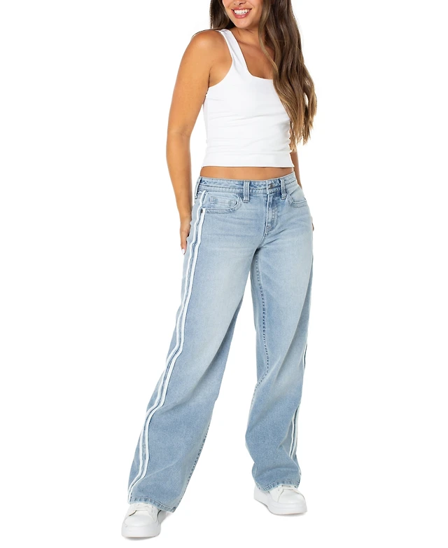 Celebrity Pink Juniors' Varsity Stripe Slouchy Straight-Leg Jeans