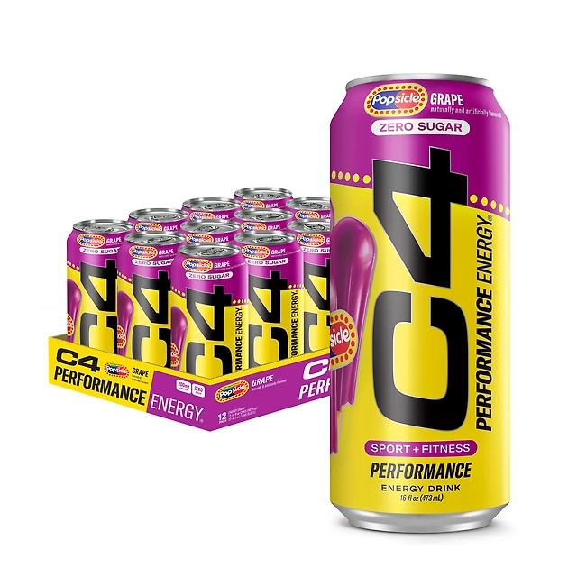 Cellucor C4 Performance Energy Drink - Grape Popsicle 16Oz. (12 Cans) Zero Sugar