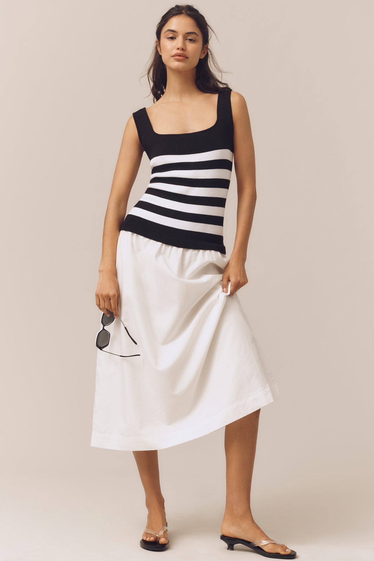 SER.O.YA Denim-Collar Short-Sleeve Sweater