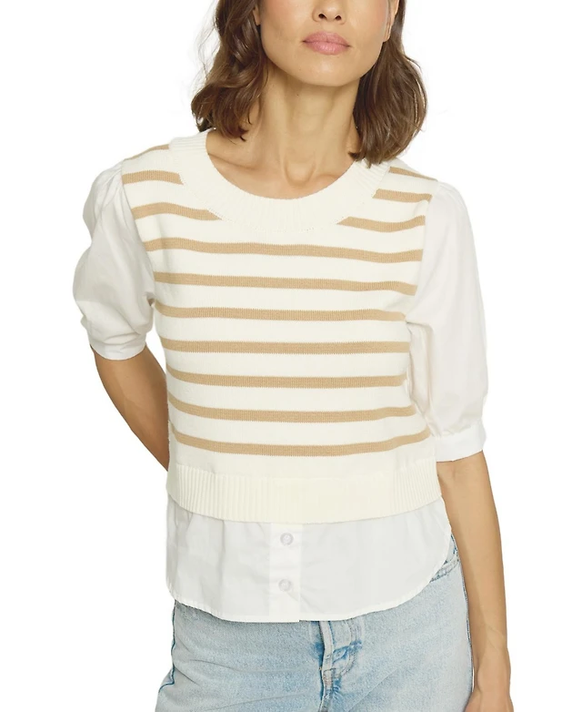 Ny Collection Women's 3/4 Sleeve Two-Fer Top