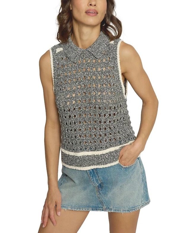 Central Park West Women's Sleeveless Cropped Open Stitch Top