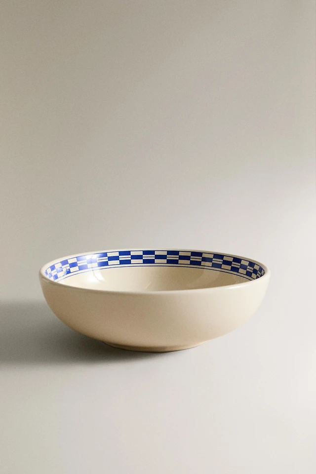 CERAMIC BOWL WITH A CHECKED DESIGN ON THE RIM