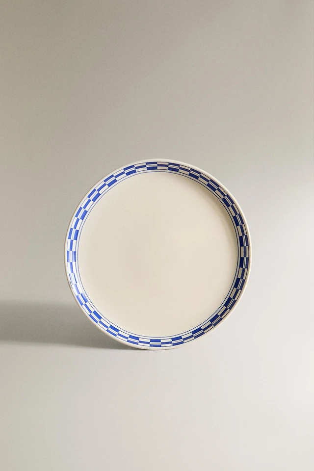 CERAMIC DESSERT PLATE WITH CHECKED RIM