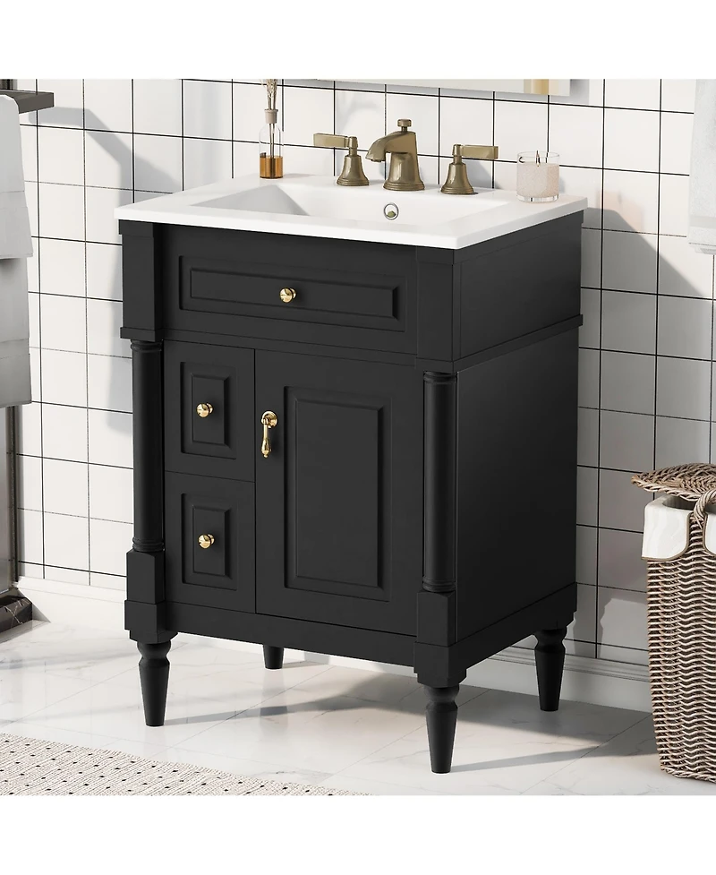 Cesicia 24 in. Freestanding Bathroom Vanity with Sink, Flip Drawer, Adjustable Shelf, Solid Rubberwood Frame, Mdf Panels and Metal Handles