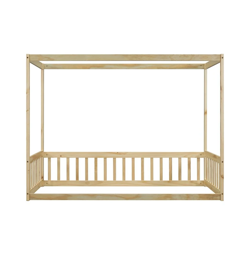 Create a dreamy retreat with this charming twin-size canopy floor bed, featuring an elegant wooden frame that inspires imagination and creativity. The sleek canopy can be adorned with curtains, lights, or ornaments to transform the space into a magical haven for sleep and play. Its open yet enclosed design offers a perfect balance of fantasy and functionality for your child s bedroom.