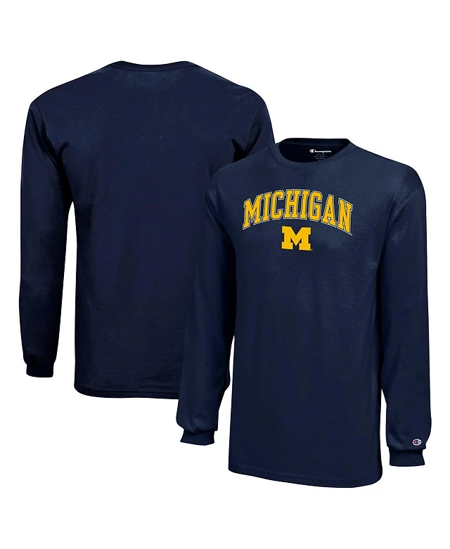 Champion Big Boys and Girls Navy Michigan Wolverines Arch Over Logo Long Sleeve T-Shirt