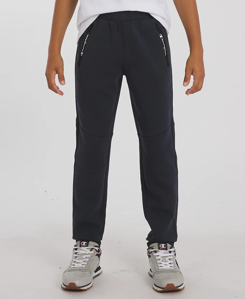 Comfort meets standout style in these Champion logo pants designed with a classic jogger silhouette. They feature an elastic waistband and bold side zipper detail that showcases the brand name.