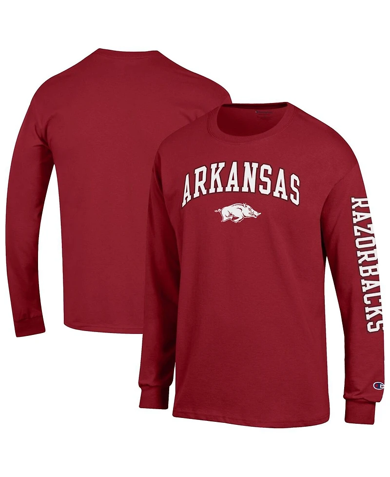 Champion Men's Cardinal Arkansas Razorbacks Arch Over Logo 2-Hit Long Sleeve T-Shirt
