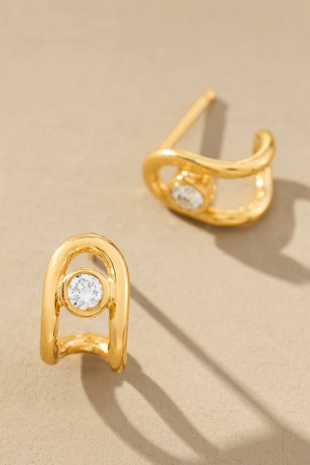 Steeltime Women's Simulated Diamonds Rounded Huggie Earrings