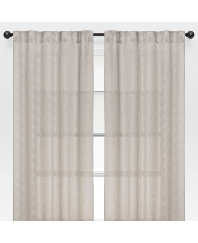 Chanasya Premium 2-Panel Diamond Textured Semi Sheer Curtain Panels - 3-in-1 Back Tab, Rod