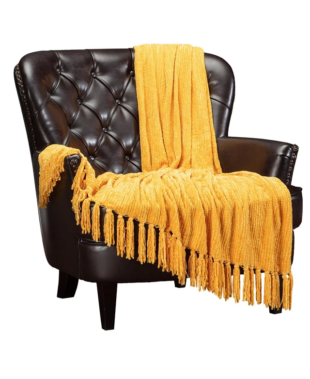 Chanasya Premium Soft Golden Chenille Knitted Textured Decorative Throw Blanket