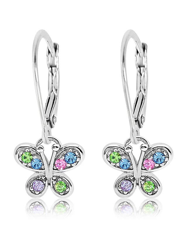 Chanteur Girls /Girl/Butterfly Crystal White Gold Palladium Plating Leverback Earring