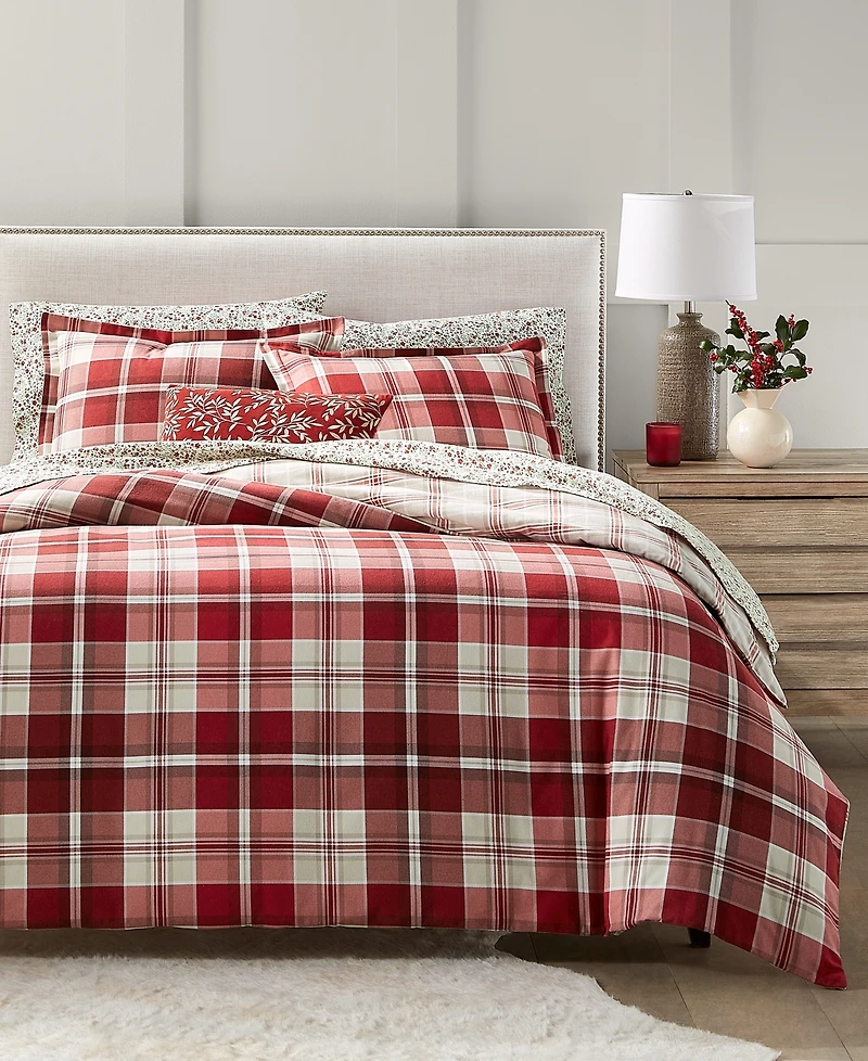 Embrace classic winter style with the Crimson Plaid comforter set from Charter Club. Fabricated in brushed cotton flannel for comfort and coziness.