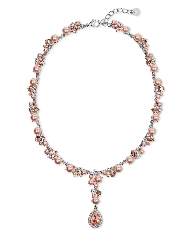 Charter Club Silver-Tone Pink Crystal & Imitation Pearl Lariat Necklace, 17" + 2" extender, Exclusively at Macy's