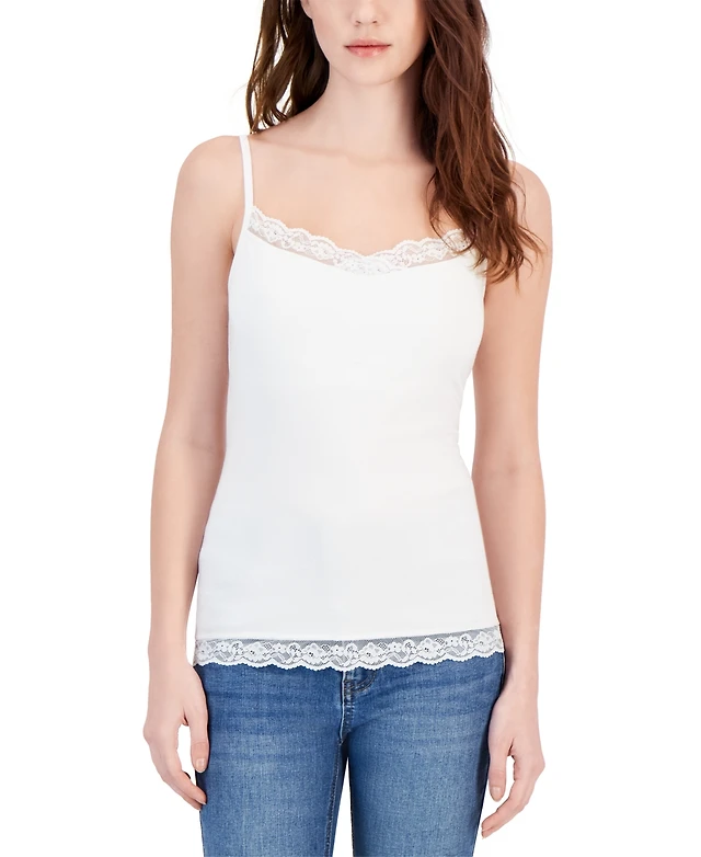 Charter Club Women's Lace-Trim Shelf-Bra Tank Top, Created for Macy's