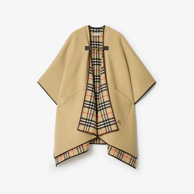 Check Wool Cashmere Cape in Sand beige | Burberry® Official
