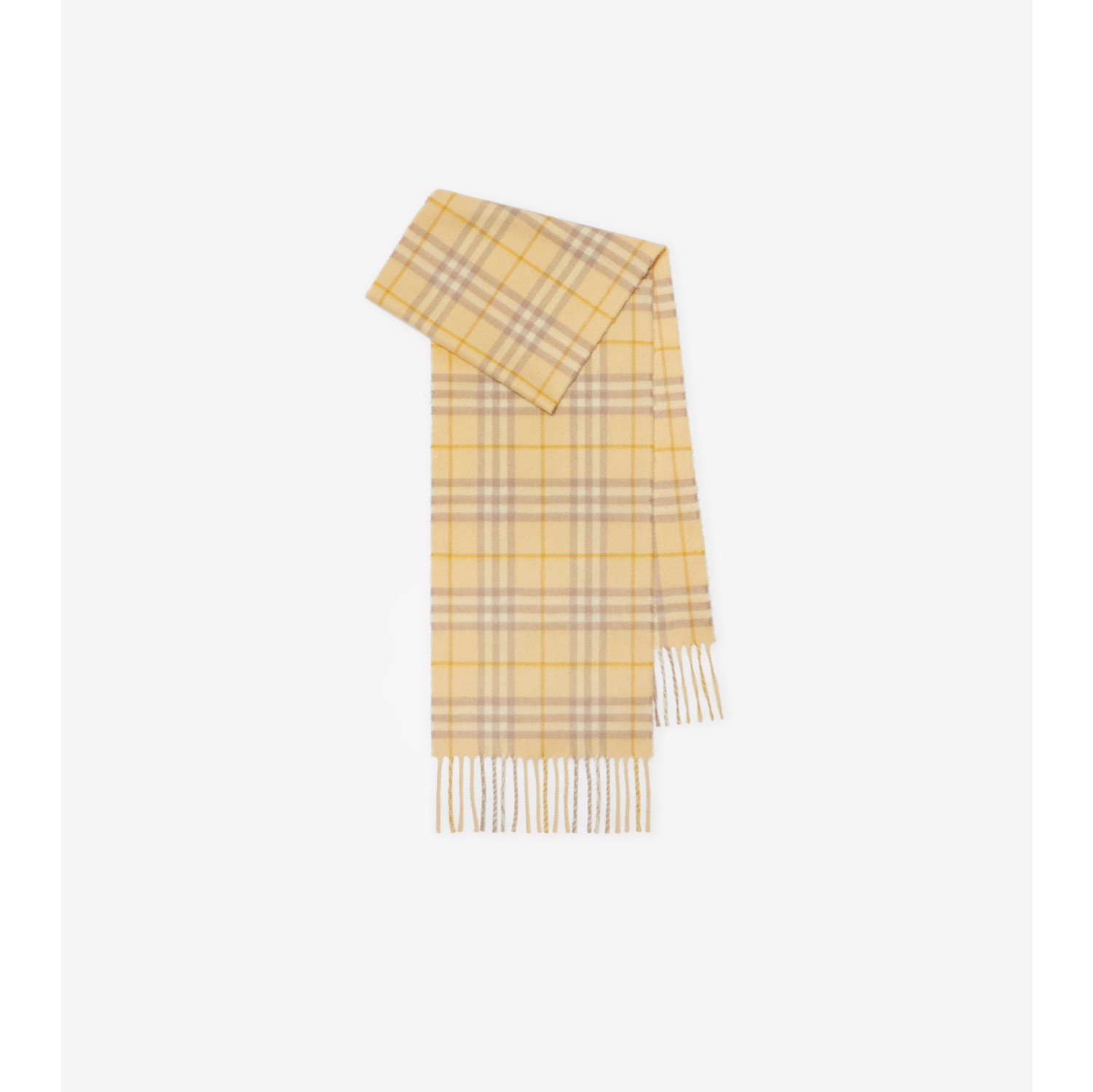 The iconic Burberry Check cashmere scarf, made in Scotland at a mill founded in 1797. The fabric is washed in local spring water and brushed with teasels for an ultra-soft finish. This item is suitable for children above the age of seven. Rectangular Fringing at both ends