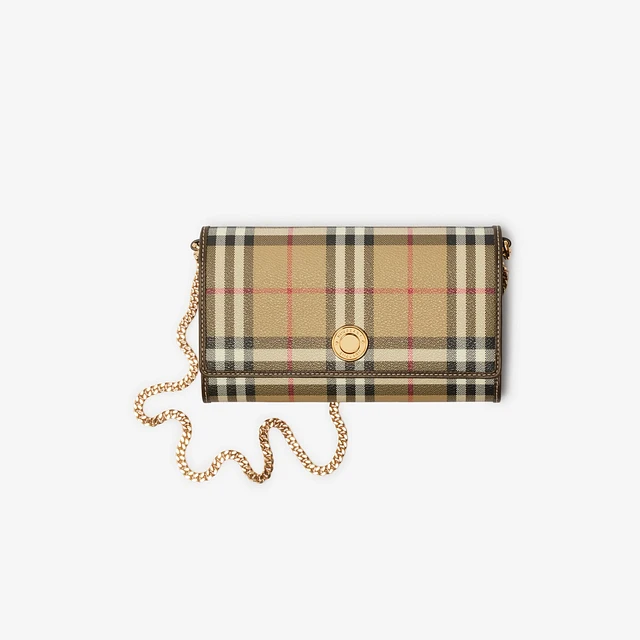 Check Chain Strap Wallet in Archive beige/military - Women | Burberry® Official