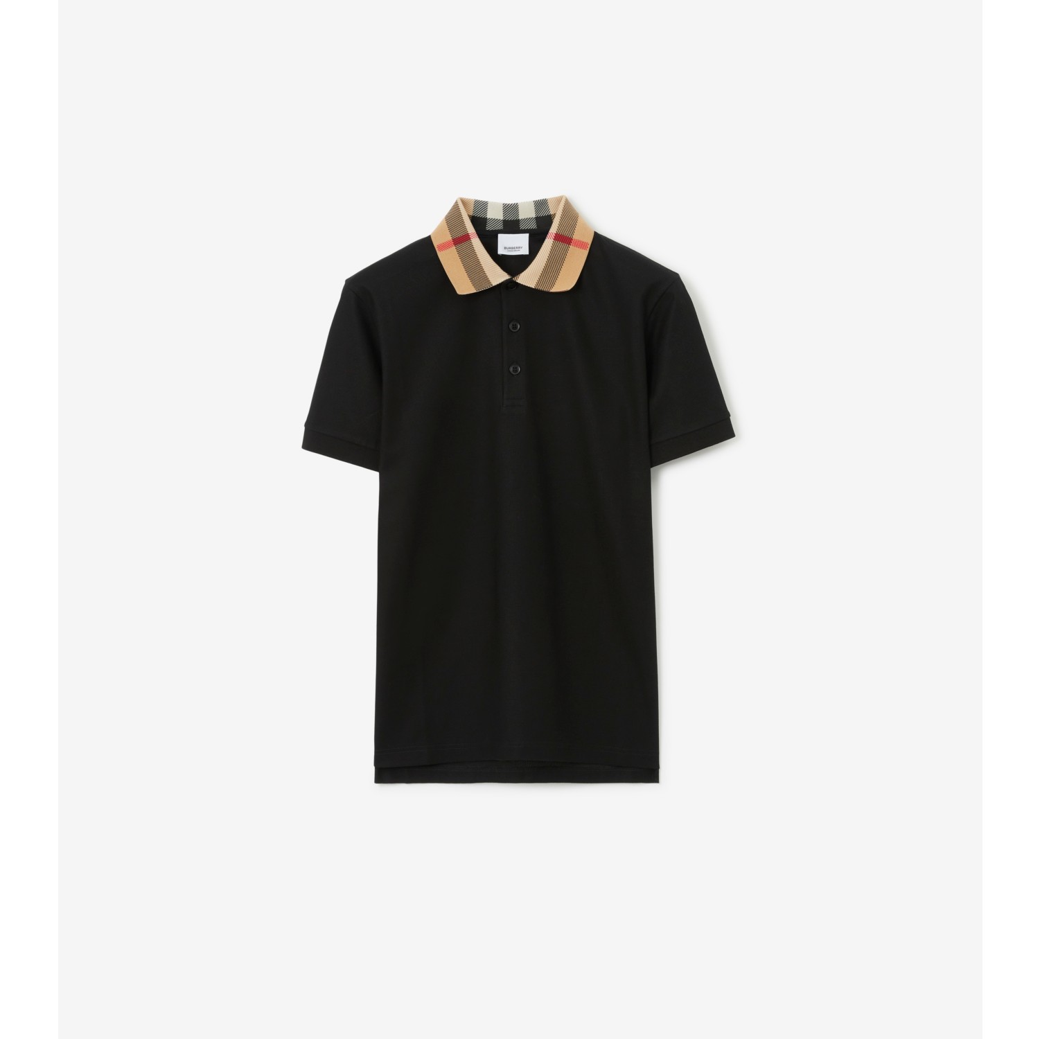 Check Collar Cotton Polo Shirt in Black | Burberry® Official