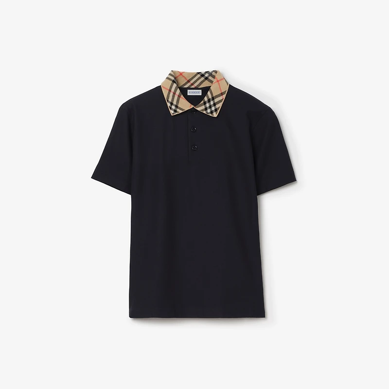 Check Collar Cotton Polo Shirt in Navy - Men | Burberry® Official