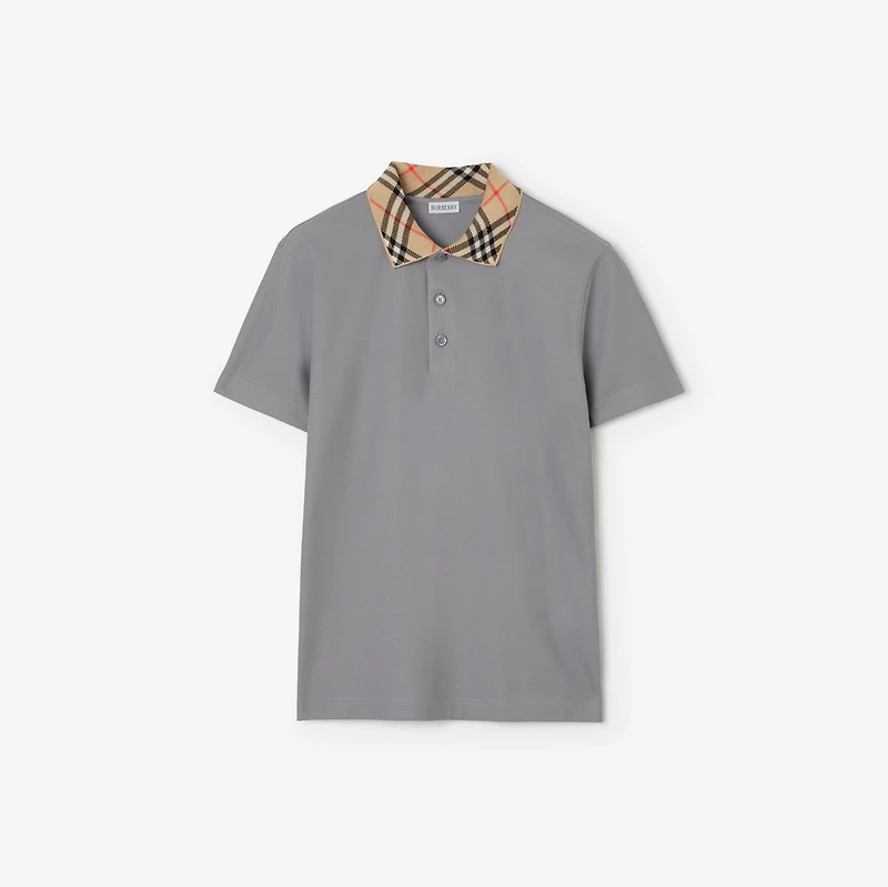 Check Collar Cotton Polo Shirt in Rainy grey - Men | Burberry® Official