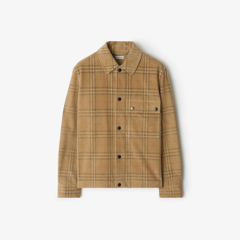 An overshirt in Italian-woven corduroy patterned with our Burberry Check. The design is cut for a relaxed fit and is finished with logo-engraved press studs. Press-stud closure Point collar Chest press-stud flap pocket Single press-stud cuffs Straight hem