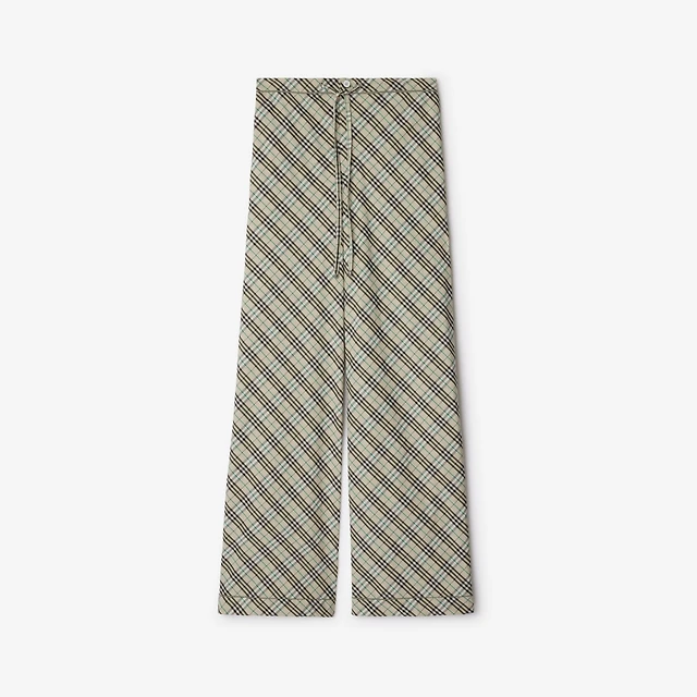 Check Silk Pyjama Trousers in Linden beige - Women | Burberry® Official